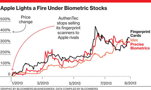 A rumored iPhone fingerprint reader prompts gains in biometric stocks (Biometrics, the next big thing? http://t.co/WY4L2txZHm #tech)