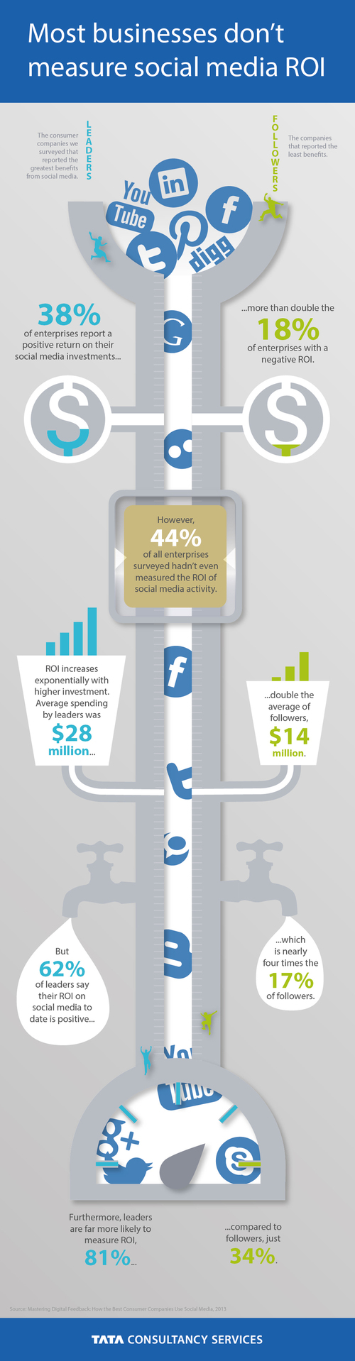In this Infographic, we illustrate how most businesses don’t measure social media ROI. (Most enterprises surveyed don’t measure ROI. TCS study reports: infographic on #Social Media ROI.