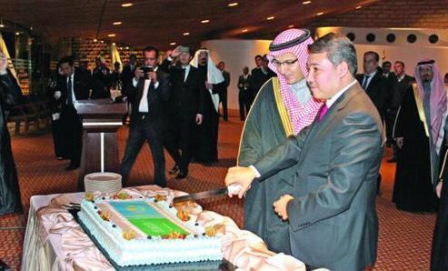CLOSE FRIENDS: Kazakhstan Ambassador Bakyt Batyrshayev and a representative from the office of the Riyadh governor at the country’s 22nd National Day celebrations in Riyadh on Sunday.