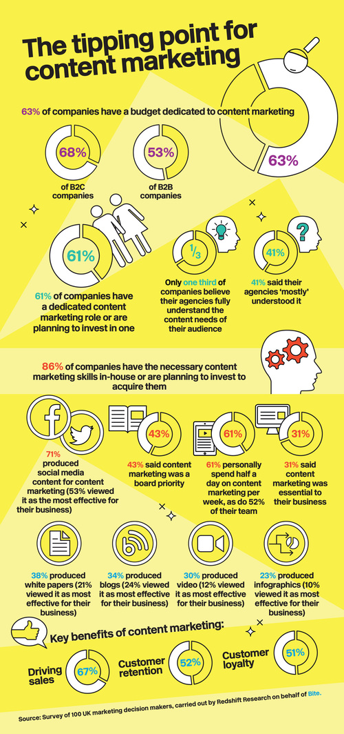 Almost two-thirds (63 per cent) of brands now have a dedicated content marketing budget, research from Bite has found, with 43 per cent of those surveyed saying content marketing was a board priority for their company.