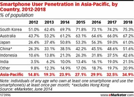 More developed markets in Asia-Pacific lead the way in mobile penetration, but the absolute numbers and strong gains in emerging markets are giving the region such a large slice of the global mobile pie. While smartphone penetration is higher in more developed markets, consumers in emerging markets account for a larger share of the total audience.