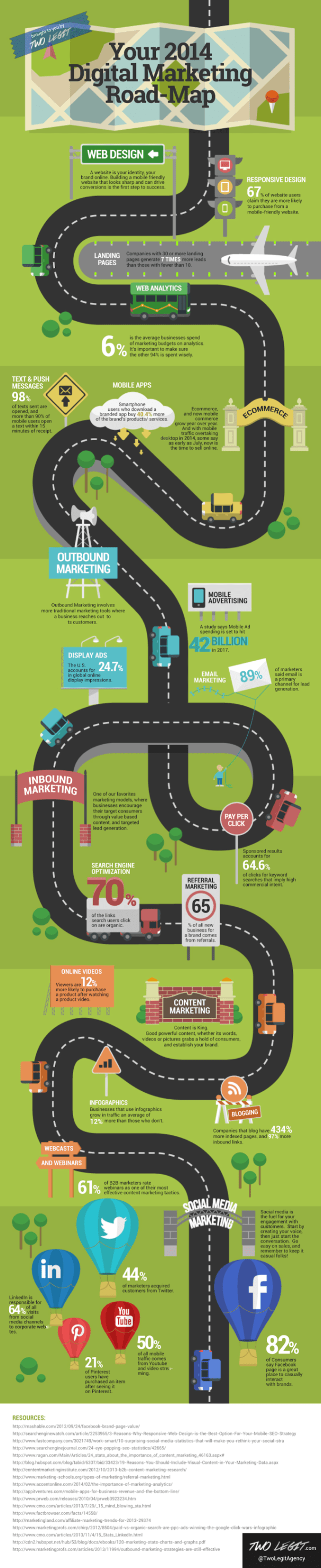 Sometimes it’s easier to just follow the dotted line as you’re looking to ensure your digital marketing is balanced and complete. This infographic compliments of Two Legit aims to do just that, walking you through your web presence, mobile, ecommerce, outbound, inbound, content and social media marketing initiatives.+