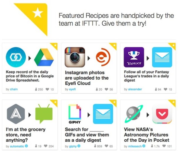 Anyone can create their own ‘recipes’, as IFTTT calls them, and if you are stumped for inspiration, you can browse open, shared recipes that have been created by other IFTTT users. There are over 136,000 of them here.