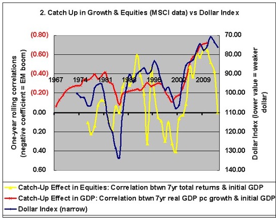 Commodity prices and the dollar suggest emerging markets will suffer, especially relative to developed markets. The downturns in oil, nickel, silver, and gold are all particularly ominous.