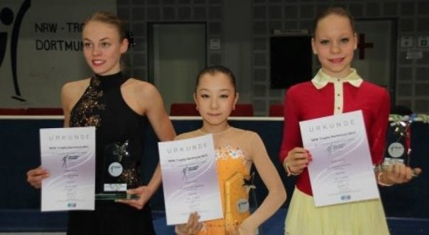 Kazakhstani figure skater Elisabeth Tursynbayeva, 14, has won the NRW Trophy 2014 in Dortmund, Germany.