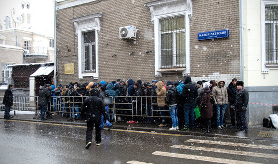 Ibragim Ishankulov stands on platform No. 1 of Moscow’s Kazansky railway station, waiting for the Moscow-Dushanbe train to depart, his hands stuffed into the pockets of his faux leather jacket.