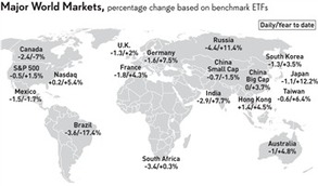 Several emerging market exchanged-traded funds fell sharply Thursday, a far cry from Wednesday’s session that showed strong gains across the globe.
