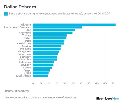 Emerging markets have borrowed a lot in dollars. Now those debts are getting harder to pay back.