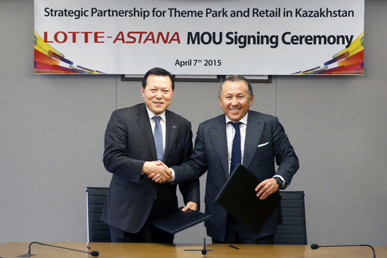 Lotte Group, South Korea’s fifth-largest conglomerate, signed a memorandum of understanding with Kazakhstan’s Astana Group on Wednesday in a bid to boost cooperation for a theme park and retail business.