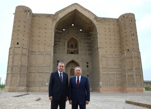 President @RT_Erdogan and President Nazarbayev of #Kazakhstan visit Mausoleum of Khoja Ahmed Yasawi in #Turkistan. pic.twitter.com/pOH21XJC9P