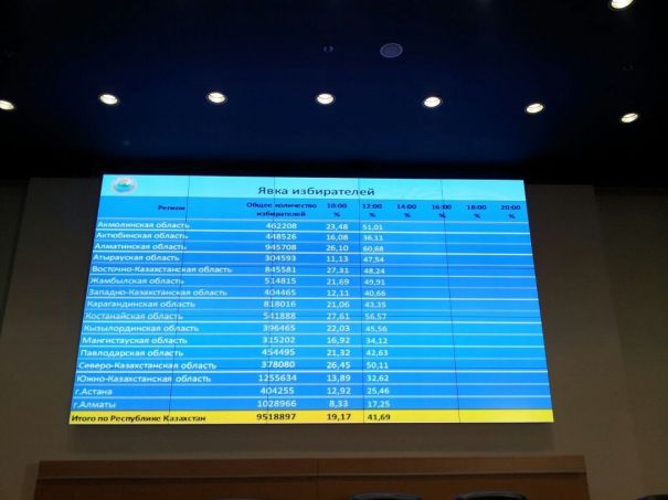 41.69 percent of all the voters in Kazakhstan have cast their ballots by noon in the April 26 presidential elections.