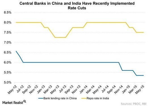 Some emerging markets (EEM) are cutting interest rates. For example, the decelerating growth in China (FXI) has led the PBOC (Public Bank of China) to cut rates.