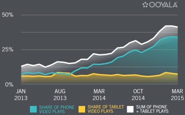 Mobile devices made up 42 percent of all online video views during Q1 2015 – made up of eight per cent from tablets and 34 per cent on smartphones. That’s