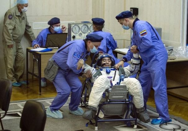 A Soyuz space capsule carrying a Russian, an American and a Japanese docked smoothly Thursday with the International Space Station.