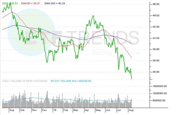 Already beaten up, emerging markets stocks and exchange traded funds were punished Tuesday after the People’s Bank of China decided to devalue the yuan. The