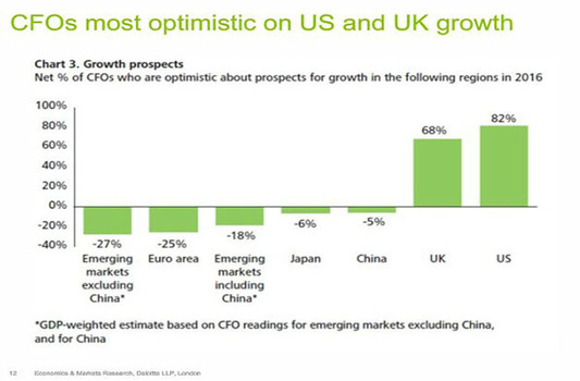 Deloitte’s Ian Stewart underlined three principal notions: U.S. and U.K. will sail along nicely; emerging markets cause nervousness; and Chinese consumer confidence is becoming the go-to indicator of global health.