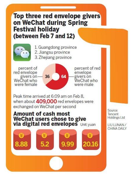 Tencent Holdings Ltd has reported a tenfold surge in the number of digital red envelopes, known as hongbao in Chinese, sent on WeChat during the weeklong Spring Festival holiday, despite both its main Internet rivals launching campaigns to lure…