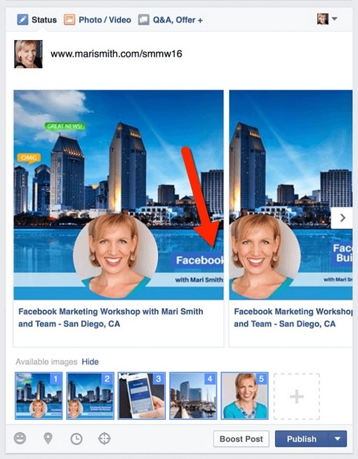 The Facebook Carousel feature allows you to publish multiple images and links in one post or ad.